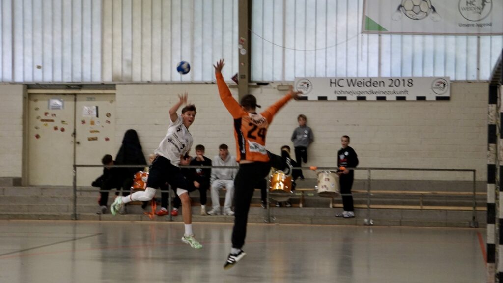 Und die Jungs legten los, wie die Feuerwehr. Basis bildete eine äußerst stabile Abwehr, die zu vielen gegnerischen Ballverlusten führte. Die Folge waren zahlreiche Tempogegenstöße, die durch einen sehenswerten Kempaabschluss gekrönt wurden. Alle Mannschaftsteile hatten einen guten Tag erwischt, sodass Weiden schnell mit 6:3, 8:3 und nach 18 Minuten mit 13:5 führte. Auch die zwei Auszeiten des gegnerischen Trainers verhinderten nicht den immer größer werdenden Weidener Vorsprung. Unsere Jungs waren „on fire“ und konnten sich alle bereits in der ersten Hälfte in die Torschützenliste eintragen. Zur Halbzeit ging es mit 17:8 in die Kabine. Wow!