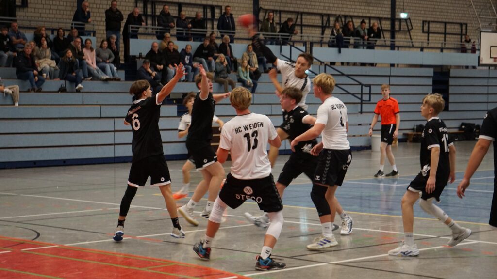 In der zweiten Halbzeit konnte der HC an die gute Leistung des ersten Durchgangs anknüpfen und den Widerstand der Essener gänzlich brechen. Alle Weidener Jungs konnten sich durch tolle Aktionen und Torerfolge auszeichnen. Das Abwehrbollwerk hielt, und unsere Kreisläufer, Rückraumschützen und Außenspieler verwandelten ihre zahlreichen Chancen sicher. Schnell stand es 26:14. Auch die gegnerische Auszeit in der 34. Minute stoppte den Weidener Zug nicht. Langsam aber stetig wurde der Vorsprung immer deutlicher (30:17; 38:20) und man trennte sich am Ende hochverdient mit 42:22. Herzlichen Glückwunsch Jungs!