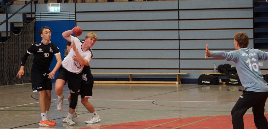 Auch der gut aufgelegte gegnerische Torwart (starke Leistung!) machte unseren Jungs das Leben schwer. Die Folge war die unnötige Essener Führung in der 8. Minute mit einem Tor (8:7). Nach dieser durchwachsenen Anfangsphase hatte das „Wolfsrudel“ aus Essen aber sein Pulver verschossen, und der HC Weiden drehte mit schönen Spielzügen und mit konzentrierten Torabschlüssen das Spiel. Nach einem 7:0 Torelauf(!) führten unsere Jungs verdient mit 17:10. Die Anzeigetafel wies nach 25 Minuten eine komfortable Führung auf (21:13).