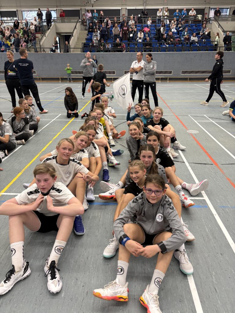 Wie es sich für die weibliche D-Jugend gehört, wurde der Sieg und das tolle Abschneiden natürlich gemeinsam gefeiert. Alle Mädchen, das Trainerteam und auch die Eltern verstehen und sehen sich als „eine Mannschaft“. Dies wurde während des gesamten Tags wieder sehr deutlich.
