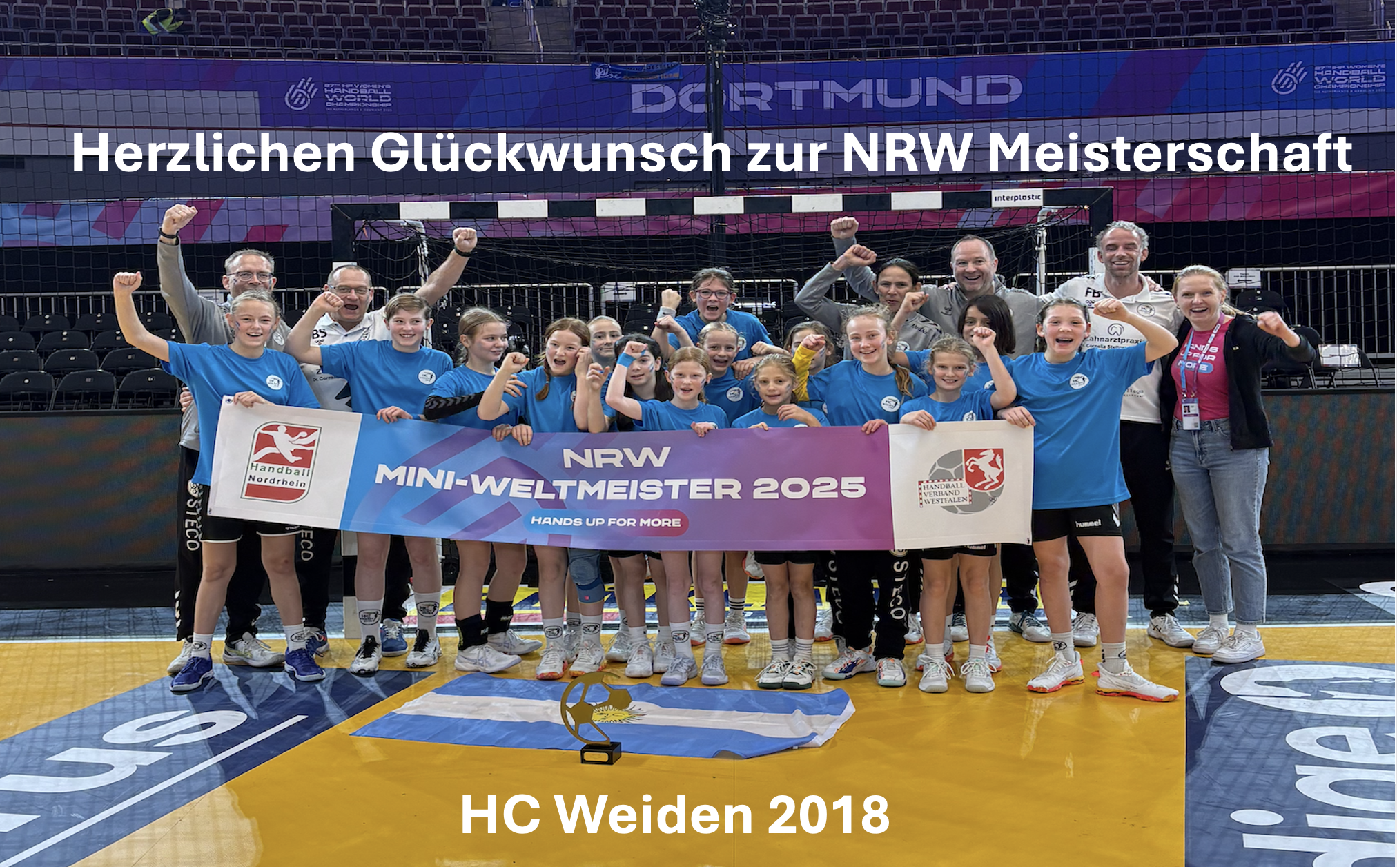Die weibliche E-Jugend des HC Weiden (Argentinien) hat am Sonntag die NRW-Weltmeisterschaft eindrucksvoll gewonnen. Im Finale traf unser Team – als Mini-Weltmeister des Handballverbands Nordrhein – auf die Mannschaft der JSG Hesselteich-Loxten, die als ungeschlagener Westfalen-Miniweltmeister (Chile) mit großem Selbstvertrauen und beeindruckender Bilanz ins Endspiel ging. Der Gegner hatte sich zuvor souverän gegen 63 Teams durchgesetzt und zudem bereits im Frühjahr mit dem Jahrgang 2014 die Mini-WM in Westfalen gewonnen.