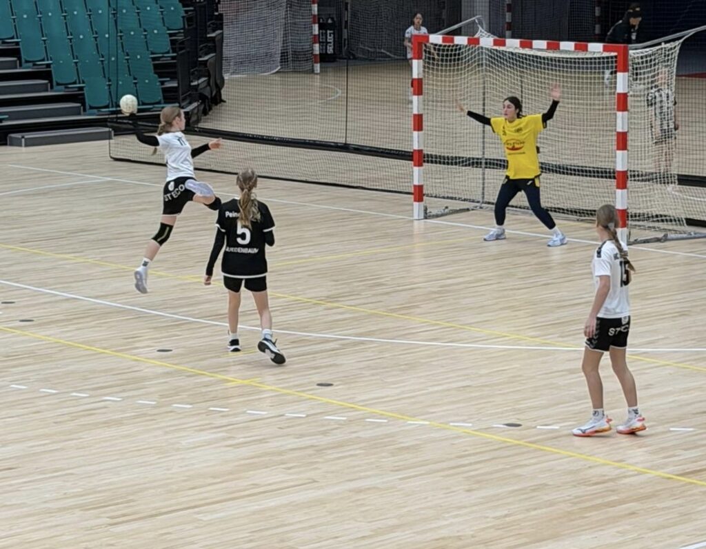 Nun begann auch sportlich das Turnier für unsere „jungen Ladies“. 13 Mädels waren bereit, ihr handballerisches Können unter Beweis zu stellen.